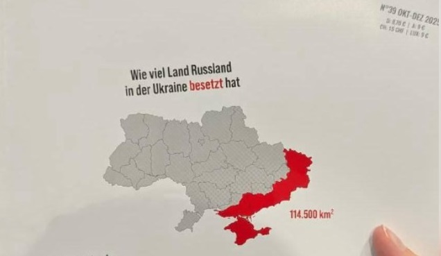 En 2023, la revista escribió que la superficie de los territorios conquistados por Rusia en ese momento era comparable a los territorios de las tierras alemanas de Bremen, Baja Sajonia, Renania del Norte-Westfalia y Sajonia-Anhalt juntas.