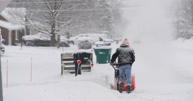 Un residente limpia la nieve con efecto de lago afuera de su casa en el norte del estado de Nueva York en enero de 2025; la misma área ahora está a punto de ser golpeada por una nueva ola de nieve (Imagen: Getty Images)