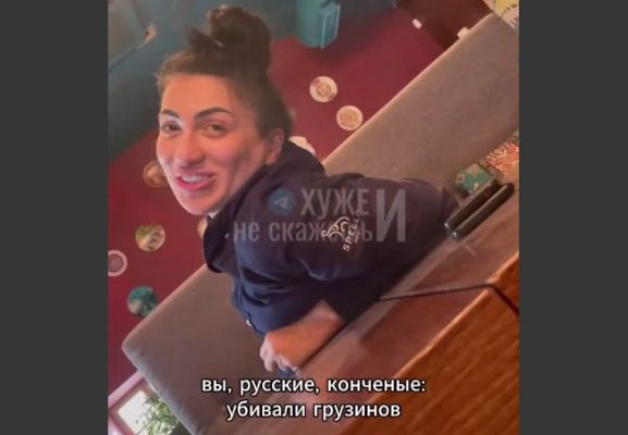 “Un video del gerente del restaurante Saperavi, que se encuentra en el centro de Moscú, ha aparecido en la red. La mujer expresó su odio por los residentes de Rusia y, satisfecho, continuó llevando a cabo su negocio”, dice el comentario del video.