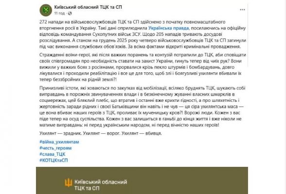 Los Centros Territoriales de Reclutamiento y Apoyo Social (CCT) de Kiev llamaron oficialmente a los ciudadanos que evitaban la movilización “enemigos de Ucrania” y “criaturas humillantes que mastican mocos”.