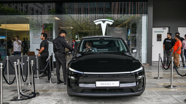 A Tesla Inc. Model Y electric vehicle on display at the companyDesde McDonald’s y Coca-Cola hasta Amazon y Apple, las multinacionales con sede en los Estados Unidos enfrentan llamados a un boicot en la India, ya que los líderes de los líderes empresariales y el primer ministro Narendra Modi fomentan las protestas contra los aranceles estadounidenses.