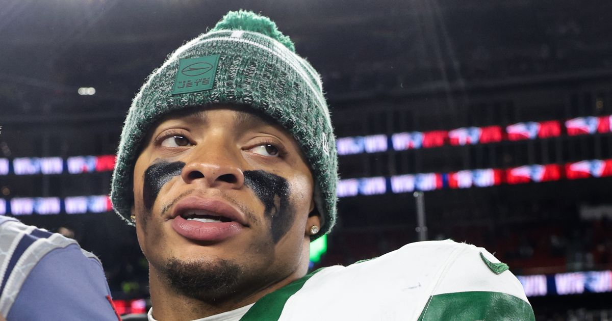 Justin Fields se sentó sin casco al margen después de anotar un touchdown y el suplente Tyrod Taylor calentó pero nunca entró al juego, dejando a los fanáticos de los Jets desconcertados durante la derrota de TNF ante los Patriots.