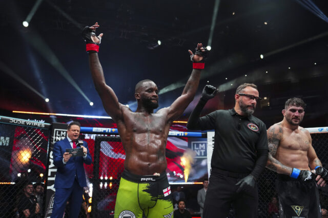 Chicago, IL – 28 de junio: Fabian Edwards celebra después de derrotar a Josh Silveira durante las semifinales del Torneo Mundial PFL 2025 en Wintrust Arena el 28 de junio de 2025 en Chicago, Florida. Chicago, IL – 28 de junio: Fabian Edwards celebra después de derrotar a Josh Silveira durante las semifinales del Torneo Mundial PFL 2025 en Wintrust Arena el 28 de junio de 2025 en Chicago, Florida. Cooper Neill/Getty Images