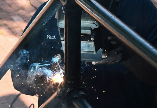 Un soldador repara una foto de estuche de hierro de Eva Hambach / AFP