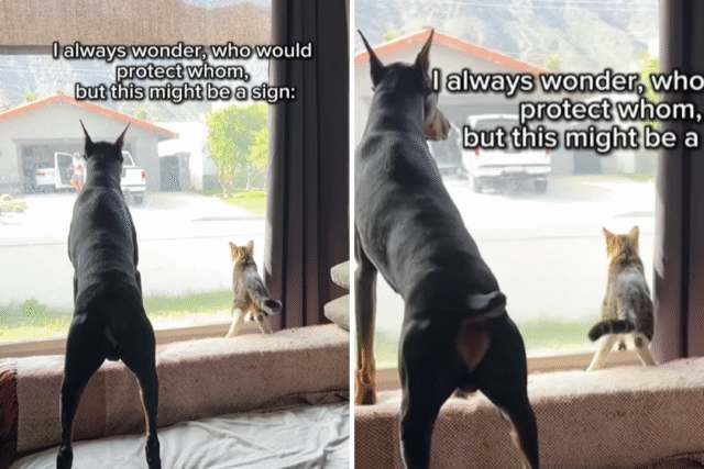 Inicialmente, una familia pensó que su Doberman sería el guardaespaldas perfecto de su gato, pero las cosas resultaron de manera diferente.