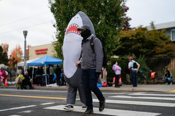 Fotos impactantes muestran a manifestantes de Portland enfrentándose a ICE con trajes de animales inflables