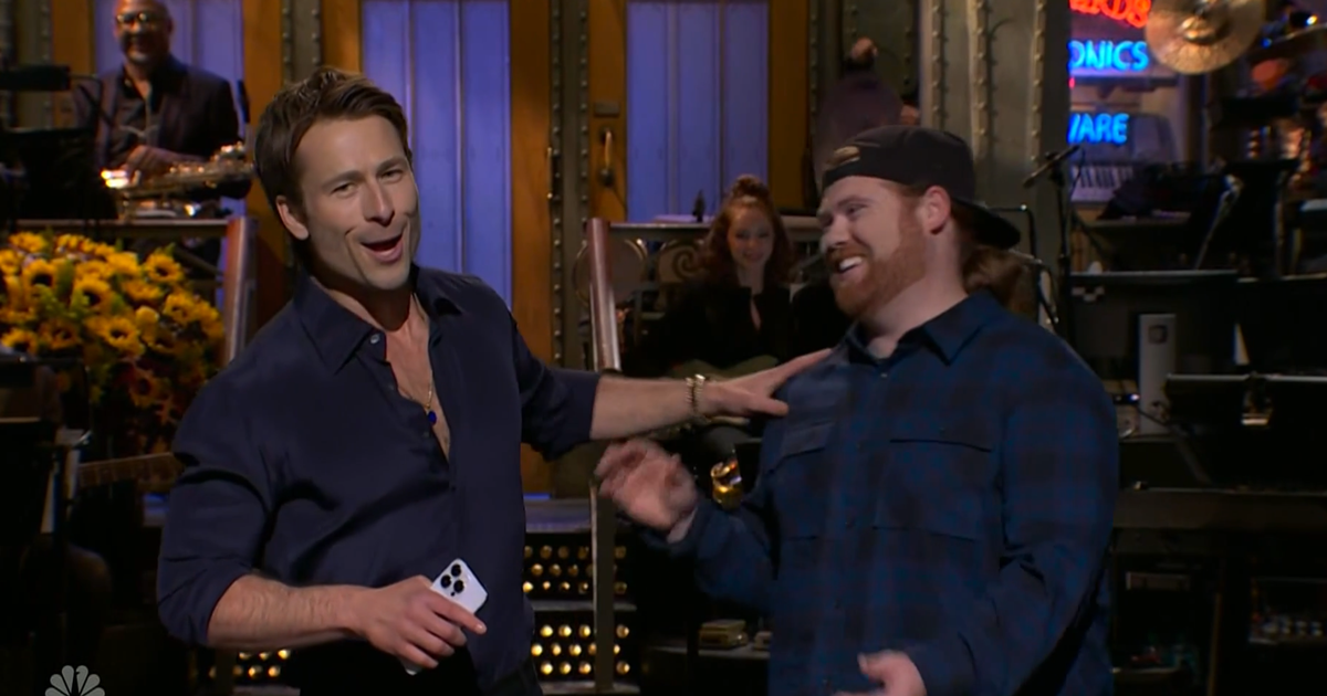 Glen Powell abrió su monólogo de Saturday Night Live recordando una promesa que le hizo en 2021 a un conductor de UPS llamado Mitch, y asegurándose de que finalmente la cumpliera.
