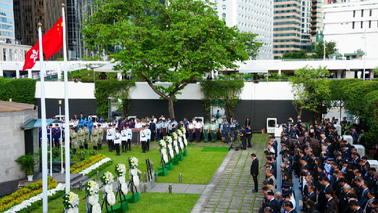A ceremony to commemorate the 80th anniversary of the victory of the Chinese PeopleEl gobierno de la Región Administrativa Especial de Hong Kong (HKSAR) celebró el miércoles una ceremonia en el Jardín Memorial del Ayuntamiento de Hong Kong para conmemorar el 80 aniversario de la victoria de la Guerra de Resistencia del pueblo chino contra la agresión japonesa y la Guerra Antiflasia Mundial.