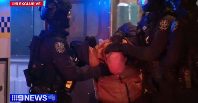 9News ha obtenido una visión exclusiva del lugar de la ciudad, donde el acusado supuestamente rompió una puerta, arrojó un ladrillo a un auto de la policía y se negó a bajar de un techo. (Nueve)