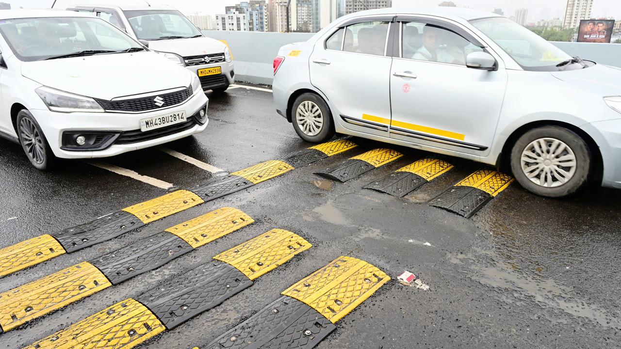 Si bien la ubicación donde las tiras de Rumble habían desaparecido se ha reparado temporalmente, persisten más problemas. El martes por la noche, cuando este periodista visitó el brazo del conector SCLR, se observó que se habían salido pequeños granos de la capa superior de la superficie de la carretera. Más adelante, cuatro tiras de retumbar instaladas para reducir la velocidad del vehículo parecían estar aflojándose de la superficie. El miércoles también, este reportero viajó a lo largo del brazo del conector que pasaba por la autopista Western Express (WEH) y aterrizó en la calzada hacia el norte. Varios parches mostraron que los granos superficiales salieron.