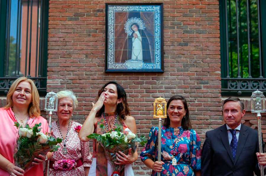 Más tarde, la Presidenta se mudó a la Iglesia de Virgen de La Paloma y San Pedro El Real, donde participó en la oferta floral tradicional y en la masa principal, presidida por el cardenal arzobispo de Madrid, José Cobo. También estuvo presente en el acto solemne del descenso de la Pintura de la Virgen, una ceremonia que hace que el Departamento de Bomberos Municipales cada año sea una señal de respeto y devoción.