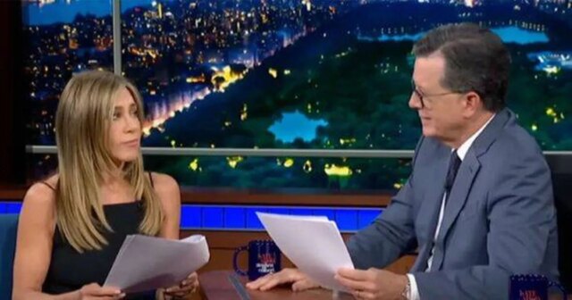 Jennifer Aniston aparece en el programa tardío para ‘audicionar’ Stephen Colbert para la serie Apple TV (Image: CBS)