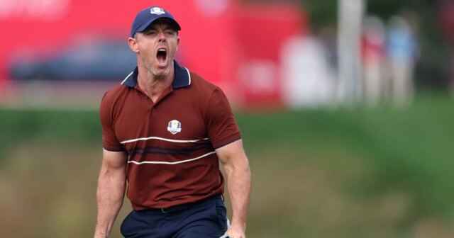 Rory McIlroy celebra la victoria del equipo europeo en la Ryder Cup (Imagen: Getty)