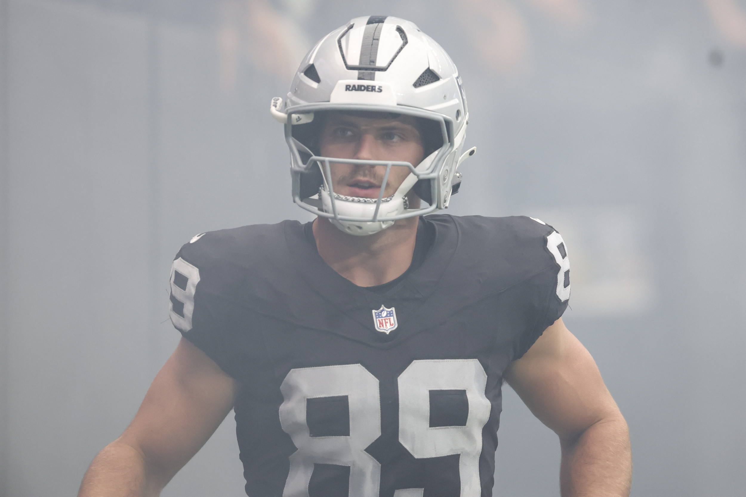 Brock Bowers #89 de los Las Vegas Raiders observa antes de un juego de pretemporada de la NFL 2025 contra los San Francisco 49ers en el Allegiant Stadium el 16 de agosto de 2025 en Las Vegas, Nevada. Brock Bowers #89 de los Las Vegas Raiders observa antes de un juego de pretemporada de la NFL 2025 contra los San Francisco 49ers en el Allegiant Stadium el 16 de agosto de 2025 en Las Vegas, Nevada. Ian Maule/Getty Images