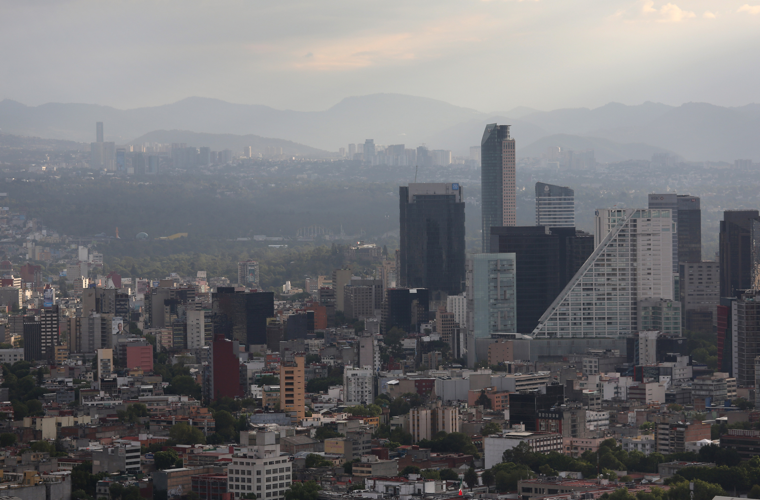 Un horizonte de la Ciudad de México se ve a través de la neblina desde la Torre Latina. John Moore/Getty Images