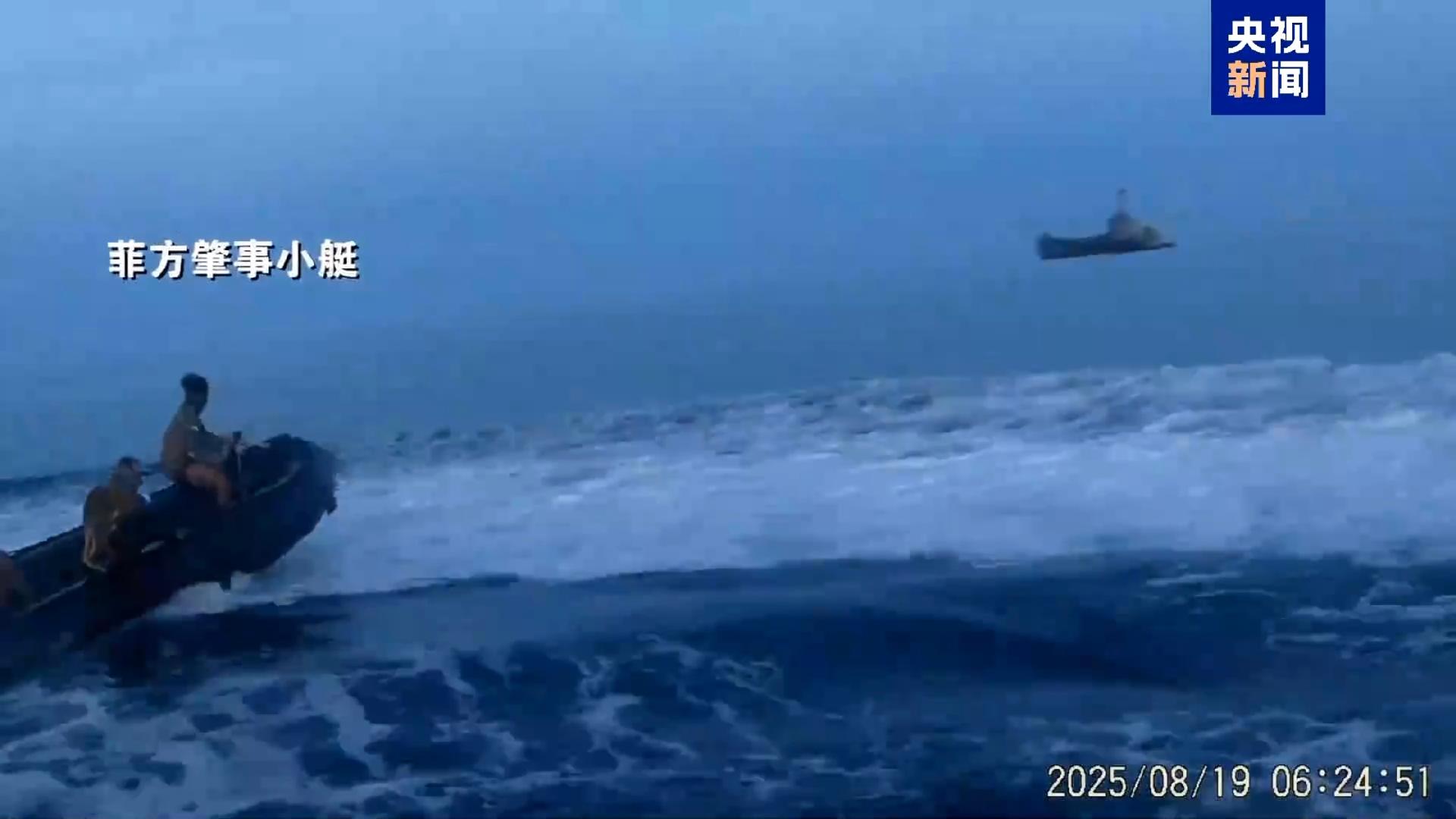 A screenshot from a video released by China Media Group shows a small Philippine boat approaching a China Coast Guard vessel. /CMGLa Guardia Costera de China (CCG) instó el viernes a Filipinas a dejar de inmediato actividades de infracción, provocaciones y falsas acusaciones, prometiendo continuar con la aplicación legal en las aguas de Ren’ai Jiao en el Mar del Sur de China.