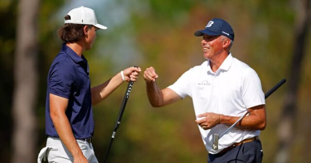 Matt Kuchar, miembro de cuatro equipos del Team USA Ryder Cup, incluido un esfuerzo victorioso en 2016, y su hijo Cameron realizaron una ronda récord que los llevó a la cima de la clasificación y a 18 bajo par 54 con una victoria de siete golpes y una billetera llena de dinero en efectivo.