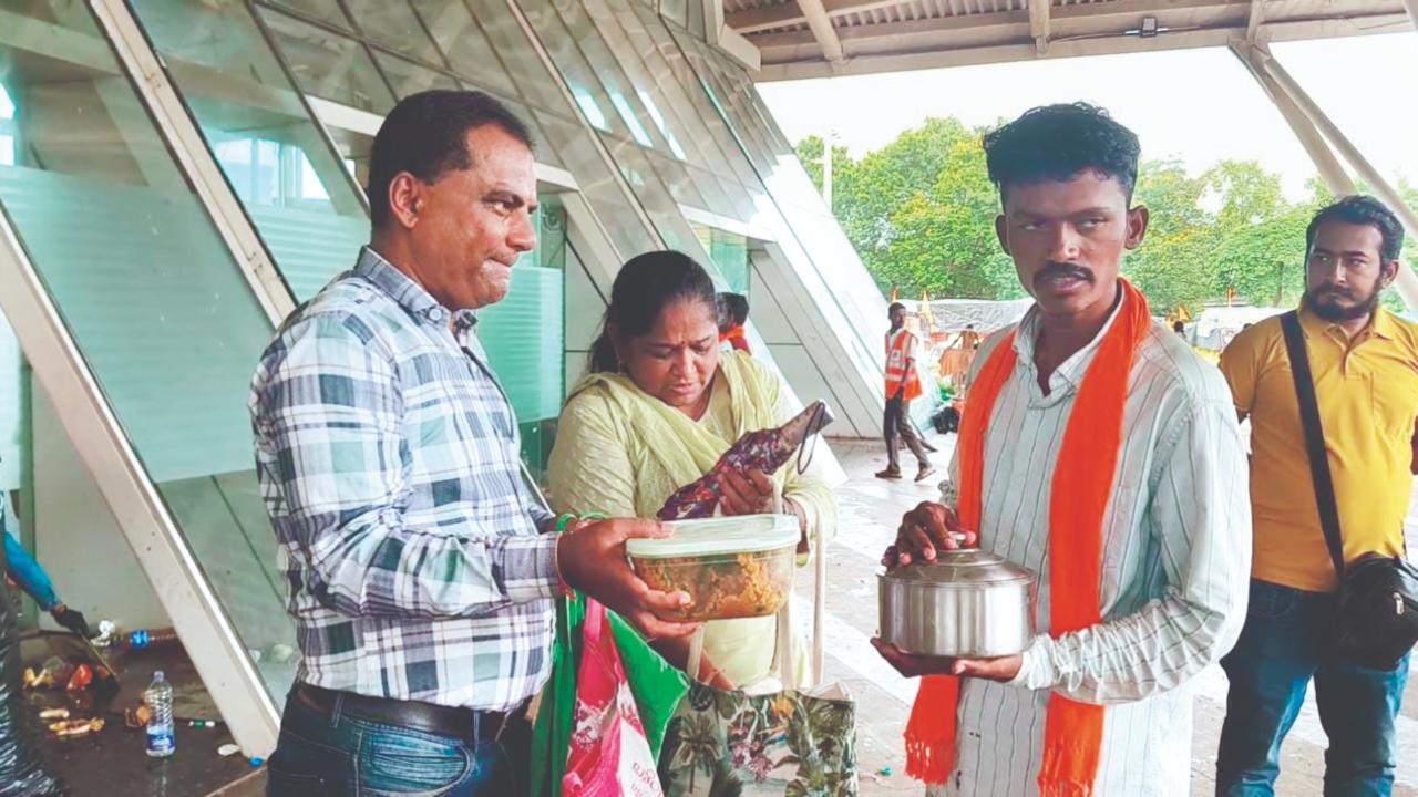La agitación de Maratha en curso en el Centro de Exposición de Cidco en Vashi fue testigo de un momento emocional el martes cuando una pareja de Panvel, Balram Patil y Alka Patil, se dirigió con comida casera para apoyar a los manifestantes.