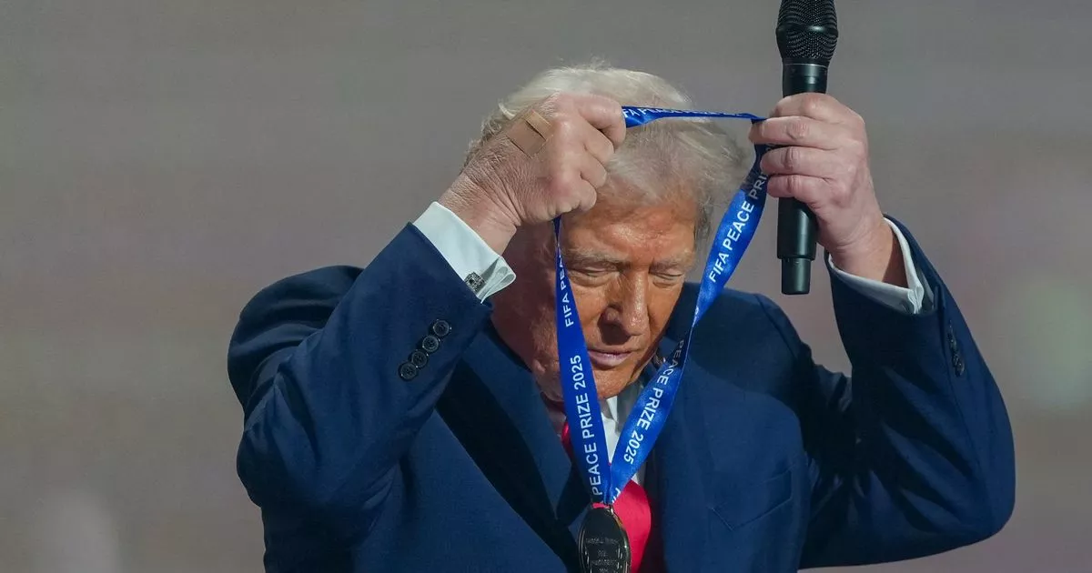 Trump se puso su propia medalla después de recibir el recién creado Premio de la Paz de la FIFA (Imagen: POOL/AFP vía Getty Images)