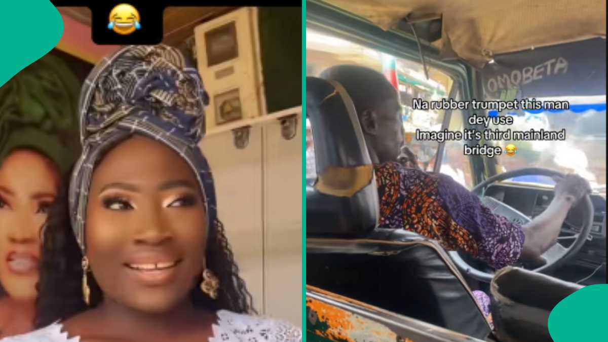 “Entré en un autobús que no tiene cuerno. NA Trompeta de goma Este hombre usa. Imagine que es el tercer puente continental. Los conductores de Lagos Island no me sorprenden … porque ¿por qué usarás una trompeta de goma como bocina?” La señora vio al conductor usando una trompeta en lugar de una bocina. Crédito de la foto: tiktok/@annys_mensworld.