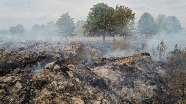 Agricultural waste smolders after a Russian air strike in the Donetsk region, August 23, 2025. /VCGEl Ministerio de Defensa de Rusia dijo el sábado que sus fuerzas han tomado el control de los asentamientos de Kleban-Byk y Srednee en la región de Donetsk.