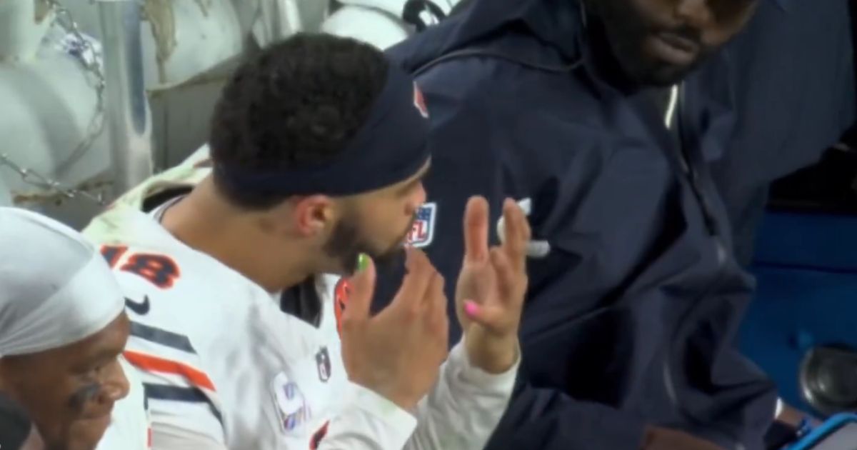 La frustración de Caleb Williams en la banca durante la victoria de los Chicago Bears sobre los Washington Commanders llamó la atención de los fanáticos obsesionados con sus uñas pintadas.