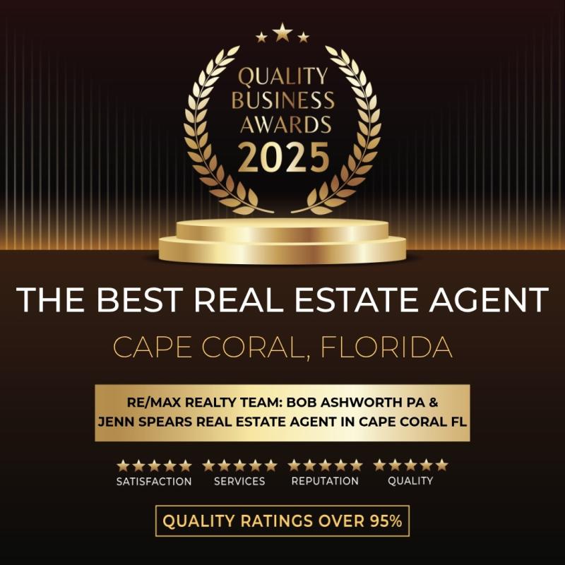 Cape Coral, FL – Re/Max Realty Team: Bob Ashworth PA y Jenn Spears Los agentes inmobiliarios en Cape Coral FL han sido reconocidos con el prestigioso Premio de Negocios de Calidad para 2025, logiendo un puntaje de calidad excepcional del 95%. Este honor coloca al equipo entre menos del 1% de las empresas registradas en Estados Unidos que han obtenido este distinguido reconocimiento por un excelente servicio al cliente y excelencia comercial.