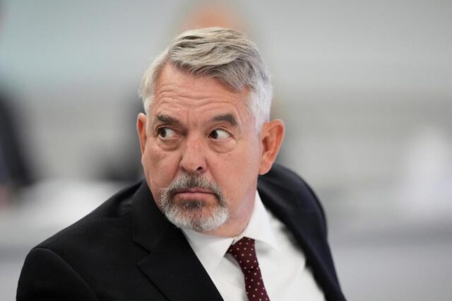 Miembro del comité, el Dr. James Pagano escucha durante una reunión del Comité Asesor de Prácticas de Inmunización en los CDC el jueves 18 de septiembre de 2025 en Chamblee, Georgia. (AP Photo/Brynn Anderson)