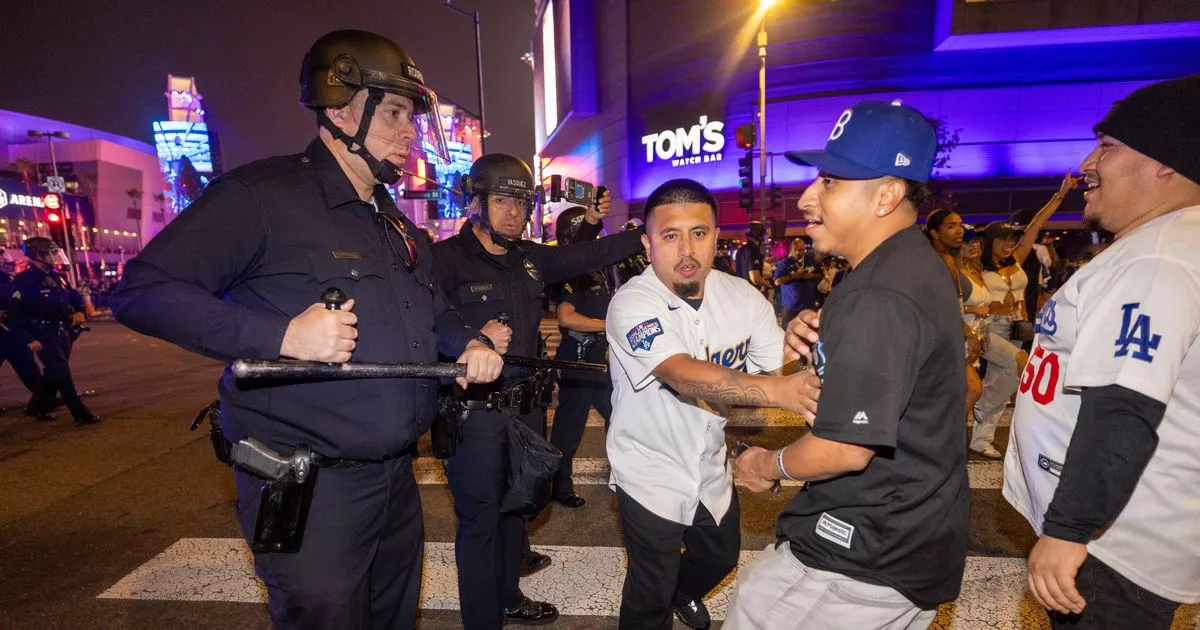 Los oficiales de LAPD toman medidas drásticas mientras las salvajes celebraciones de los Dodgers se convierten en caos