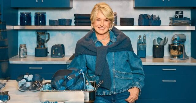 Una nueva campaña de American Eagle encabezada por el ícono de la cocina Martha Stewart, de 84 años, se llama ‘Martha Wraps the Gifts in AE’ y la ve modelando jeans azules.