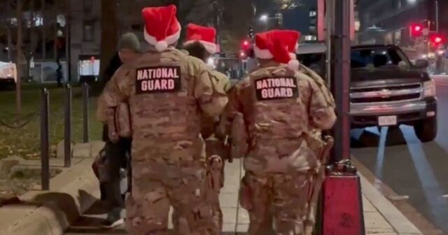 Home News Miembros de la Guardia Nacional usan gorros de Papá Noel en una...