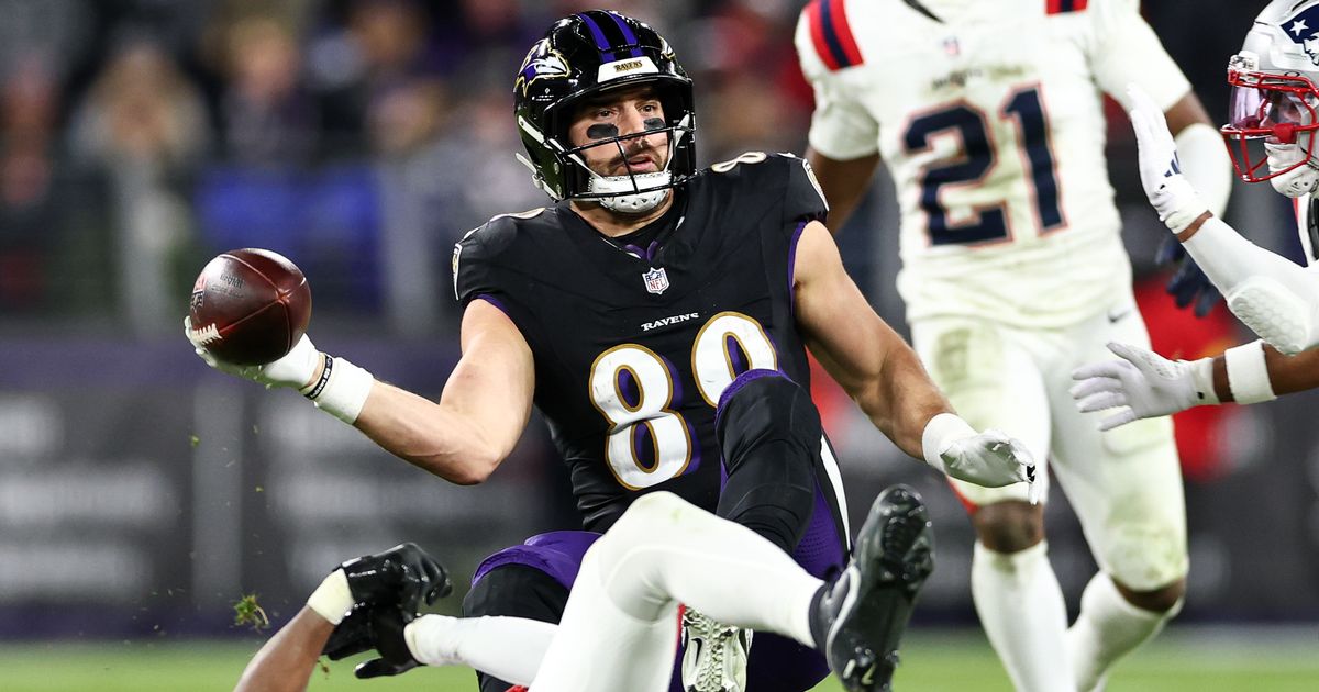 Cuando se acababa el tiempo en el segundo cuarto del enfrentamiento de los Baltimore Ravens contra los New England Patriots, el mariscal de campo suplente Tyler Huntley le lanzó el balón a Mark Andrews. Mientras Andrews era derribado por la defensa de los Patriots, el jugador de 30 años intentó desesperadamente lanzar el balón.