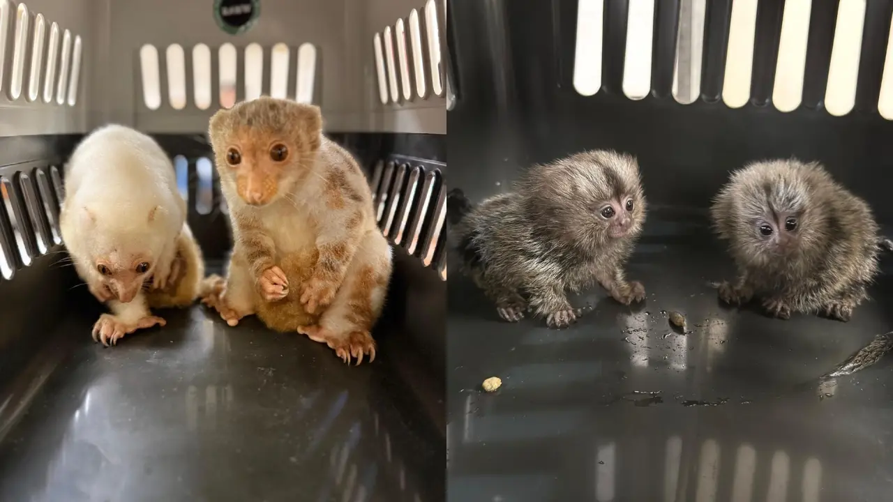 Las autoridades dijeron que los animales fueron encontrados ocultos dentro del equipaje del pasajero. El acusado fue arrestado bajo las disposiciones de la Ley de Aduanas, 1962, leída con la Ley de Vida Silvestre (Protección), 1972.