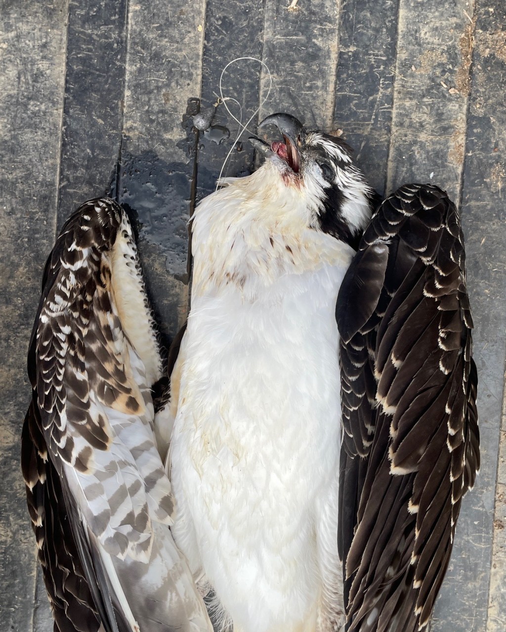 Los funcionarios del Parque Estatal de San Vrain encontraron una de sus jóvenes águilas pesqueras colgadas por una plataforma de anidación después de que aparentemente se tragó “varios pies de línea de pesca y ganchos” el viernes.