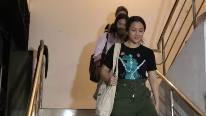 Sherina llegó a la sede de la policía de East Yakarta desde la mañana alrededor de las 10:00 WIB acompañada de su asesor legal, Adit.