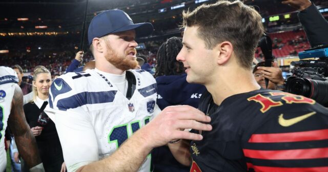 Después del partido, Darnold abrazó a Purdy antes de decirle: “Te veré en un par de semanas”.