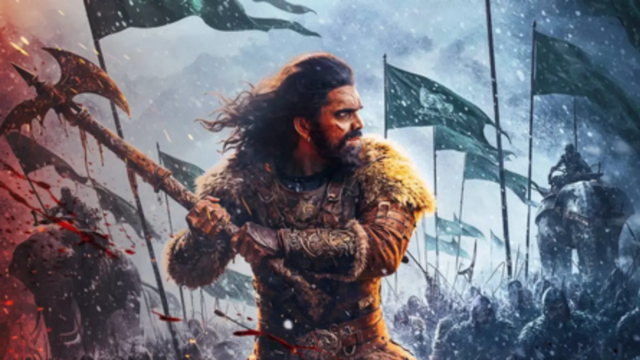 El póster del primer vistazo es una imagen impactante ambientada en un campo de batalla cubierto de nieve y azotado por una tormenta. Rishabh aparece en medio de la carga, blandiendo un hacha de batalla gigante empapada de sangre con feroz resolución.