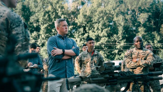 Secretario del Ejército Dan Driscoll Reunión con Rangers en Hunter Airfield. (Spc. Luke Sullivan/75th Ranger Regiment)