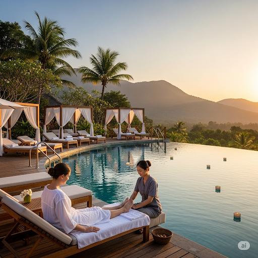 Un complejo de spa es un centro de hospitalidad que ofrece alojamiento residencial junto con servicios integrales de bienestar y cuidado del cuerpo, incluidos los tratamientos de spa (masajes, faciales, hidroterapia, envolturas corporales), programas de bienestar, clases de acondicionamiento físico, cocina saludable, atención médica y terapias de estrés y reducción de estrés y servicios recreativos como piscinas, saunas y senderos de la naturaleza. Los resorts de spa se centran en el bienestar holístico, a menudo integrando tratamientos de grados médicos como fisioterapia, asesoramiento nutricional y evaluaciones de salud preventiva. Los huéspedes permanecen en el sitio para duraciones que van desde escapadas de fin de semana hasta retiros extendidos, participando en regímenes de bienestar a medida. Los resorts de spa atraen a los viajeros que buscan experiencias restaurativas que combinan el ocio, la salud y la inmersión ambiental. Pueden enfatizar las tradiciones curativas locales, usar remedios naturales y mantener el diseño ecológico. Con el creciente interés en el turismo de bienestar, el bienestar privado y los viajes impulsados ​​por la experiencia, los resorts de spa se han expandido a nivel mundial, introduciendo innovaciones como el seguimiento de bienestar digital, los servicios de biohacking y los viajes de invitados seleccionados alineados con objetivos físicos, mentales y nutricionales.