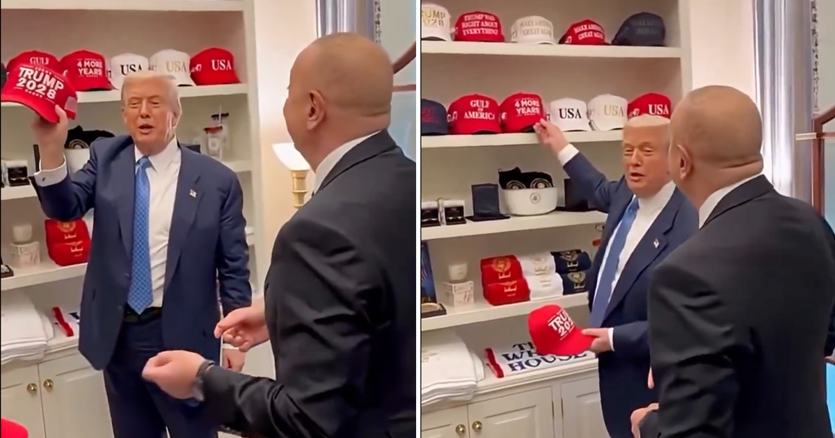 En un video publicado en las redes sociales, se puede ver a Trump mostrando la mercancía al presidente de Azerbaiyán, Ilham Aliyev. Incluyó sombreros que decían “Trump 2028” y “4 años más”.