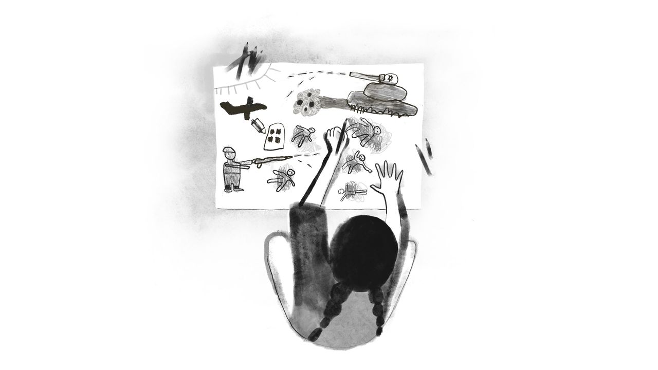 Akhras, un psiquiatra de niños y adolescentes, perdió su hogar en una huelga israelí, a principios de 2024. Él y su familia han sido desplazados varias veces, viviendo en tiendas de campaña donde el lienzo suda de demasiados cuerpos presionó en muy poco espacio. Ya no se sienta en una oficina de paredes blancas o usa una insignia. Pero continúa trabajando, viendo a unos cincuenta pacientes al día, la mayoría de ellos niños. Uno de sus pacientes habituales es una niña, no mayor de catorce años, que sobrevivió a una huelga que mató a toda su familia. Se despertó en una UCI, sola, incapaz de entender a dónde habían ido todos. Ahora se sienta frente a Akhras en silencio, hasta que pregunta, una y otra vez, si él puede traerlos de vuelta. No tiene respuesta, solo un lápiz y un libro para colorear, que espera que pueda usar para expresar y procesar sus emociones.