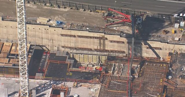 Los paramédicos fueron llamados a un sitio de construcción de Meriton en Pennant Hills Road en Carlingford en el noroeste de Sydney esta mañana.