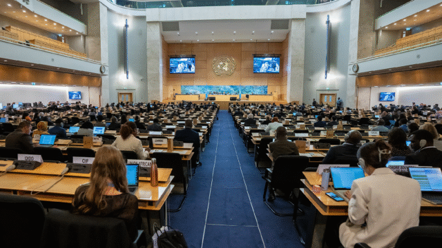 A general view of participants of the 60th session of the Human Rights Council at the UN headquarters in Geneva, September 9, 2025. /VCG El Consejo de Derechos Humanos de las Naciones Unidas (ANHRC) celebrará un debate urgente en Ginebra el martes con respecto al ataque aéreo del 9 de septiembre de Israel dirigido a los líderes de Hamas en Qatar, anunció el lunes el consejo.