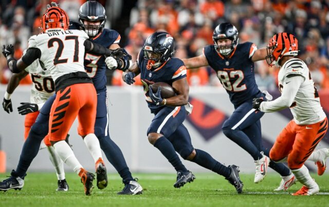 Cuando se anuncia la presencia de Palczewski en Empower Field, no hay sorpresa: los Broncos probablemente están a punto de dirigir el fútbol con el combo 1-2 de JK Dobbins y RJ Harvey. Denver terminó corriendo para 186 yardas en 38 intentos el lunes por la noche durante un revolcón de 28-3 sobre tambaleándose de Cincinnati.