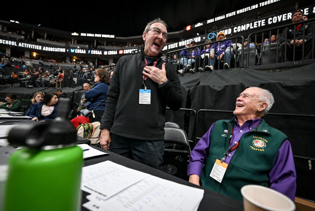 Entre Smith y Yount, tienen 112 años combinados de experiencia cubriendo la lucha libre en las escuelas secundarias de Colorado en su escenario más grande. Si desea saber algo sobre el torneo, pasado o presente, los dos hombres que se sientan uno al lado del otro a lo largo de los asientos del piso elevado de CHSAA son los hombres a quienes debe preguntar.