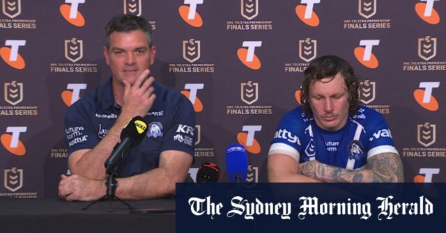 El entrenador de los Bulldogs, Cameron Ciraldo, queda frustrado por el arbitraje en la pérdida final de clasificación de su equipo.