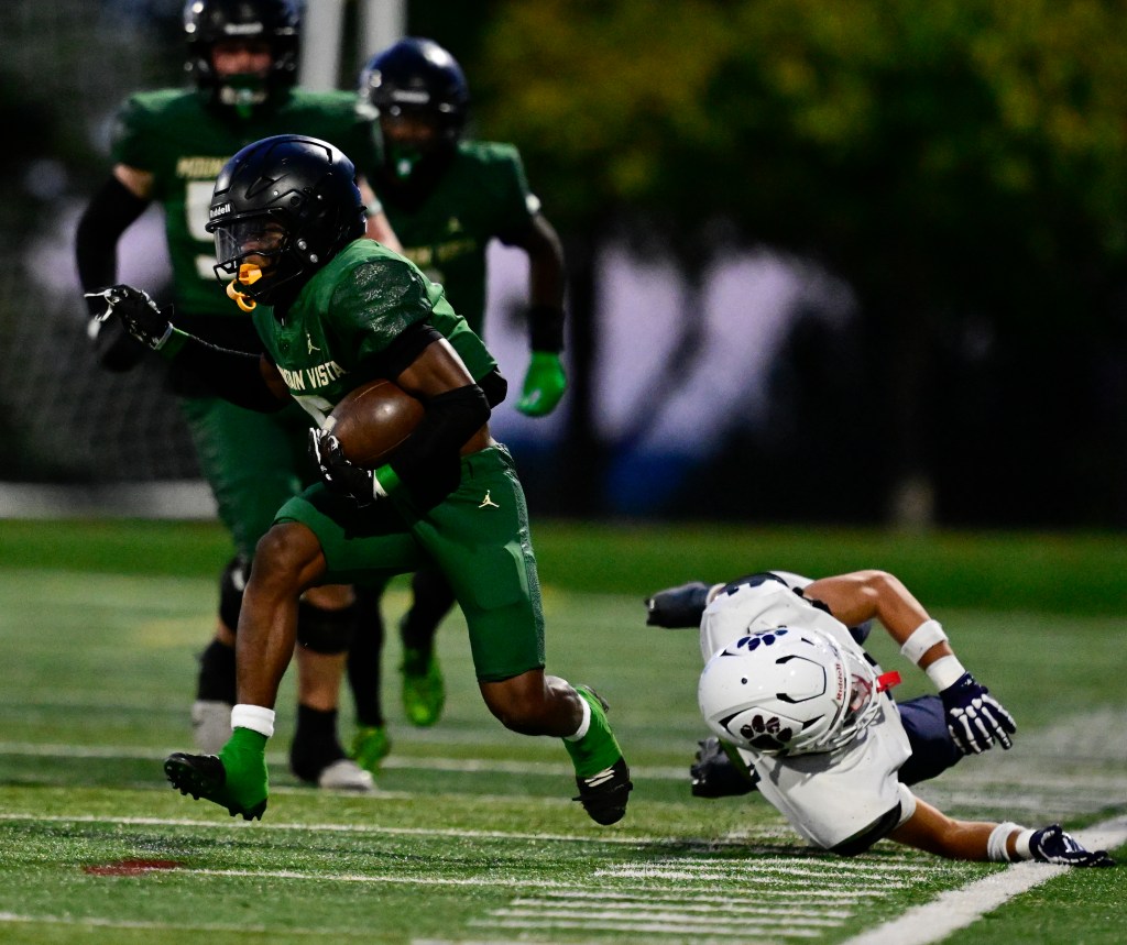 3. Mountain Vista (8-0) ganó contra Fruita Monument, 62-7: Los Golden Eagles pusieron 49 puntos en el marcador al medio tiempo y superaron un récord de la temporada en puntos anotados en un juego para alejarse de una victoria de su segundo título de liga consecutivo con otra actuación dominante el jueves por la noche. La próxima semana: en Rock Canyon, a las 7 pm el 24 de octubre.