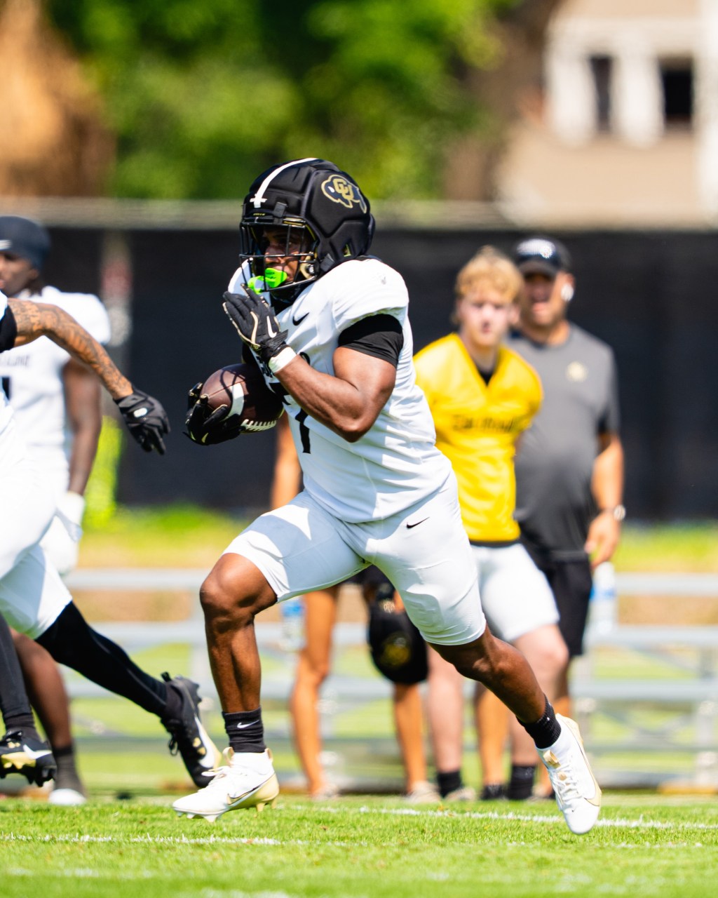 El corredor de Colorado Dallan Hayden durante la práctica de fútbol el 1 de agosto de 2025, en Boulder, Colorado (CU Athletics)