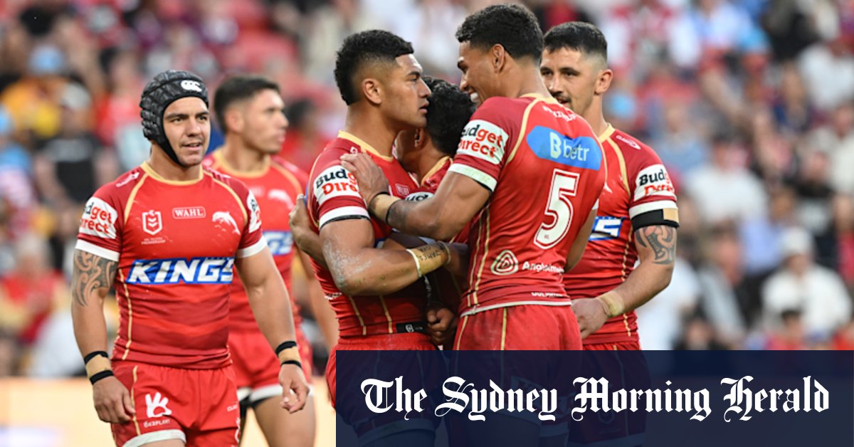 47 minutos: los Dolphins retoman el liderazgo: un pase elegante de Nikorima encontrando a Kurt Donoghoe, quien se desvanece de un tackle y descarga para que Naufahu anote su segundo. Isaako Converts, 24-18.