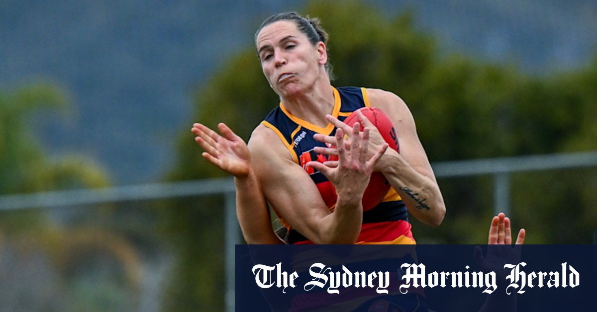 El veterano de Adelaide AFLW, Chelsea Randall, toma una fuerte toma el domingo contra Geelong. Credit: Getty Images